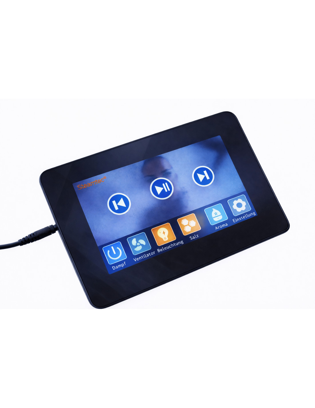 Entdecken Sie mit dem TOLO „Farbdisplay+“ eine neue Dimension der Dampfbad-Steuerung – Temperaturmessung, Musikgenuss sowie einfache Bedienbarkeit und gute Ablesbarkeit vereint in einem hochmodernen System.